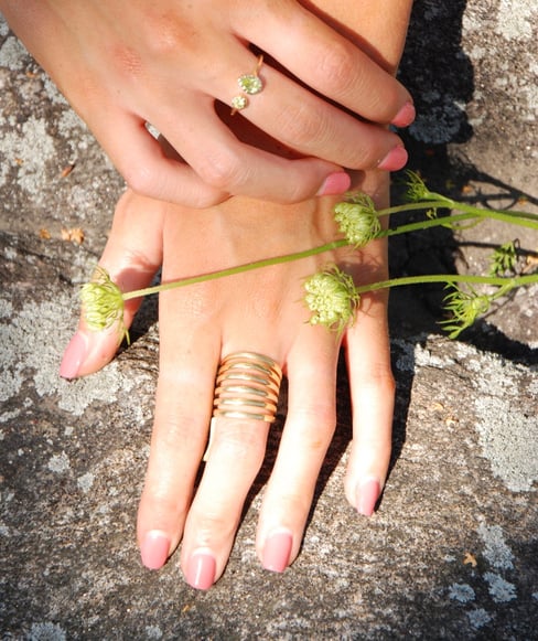 sterling silver, gold fill and vermeil, semi-precious gems.